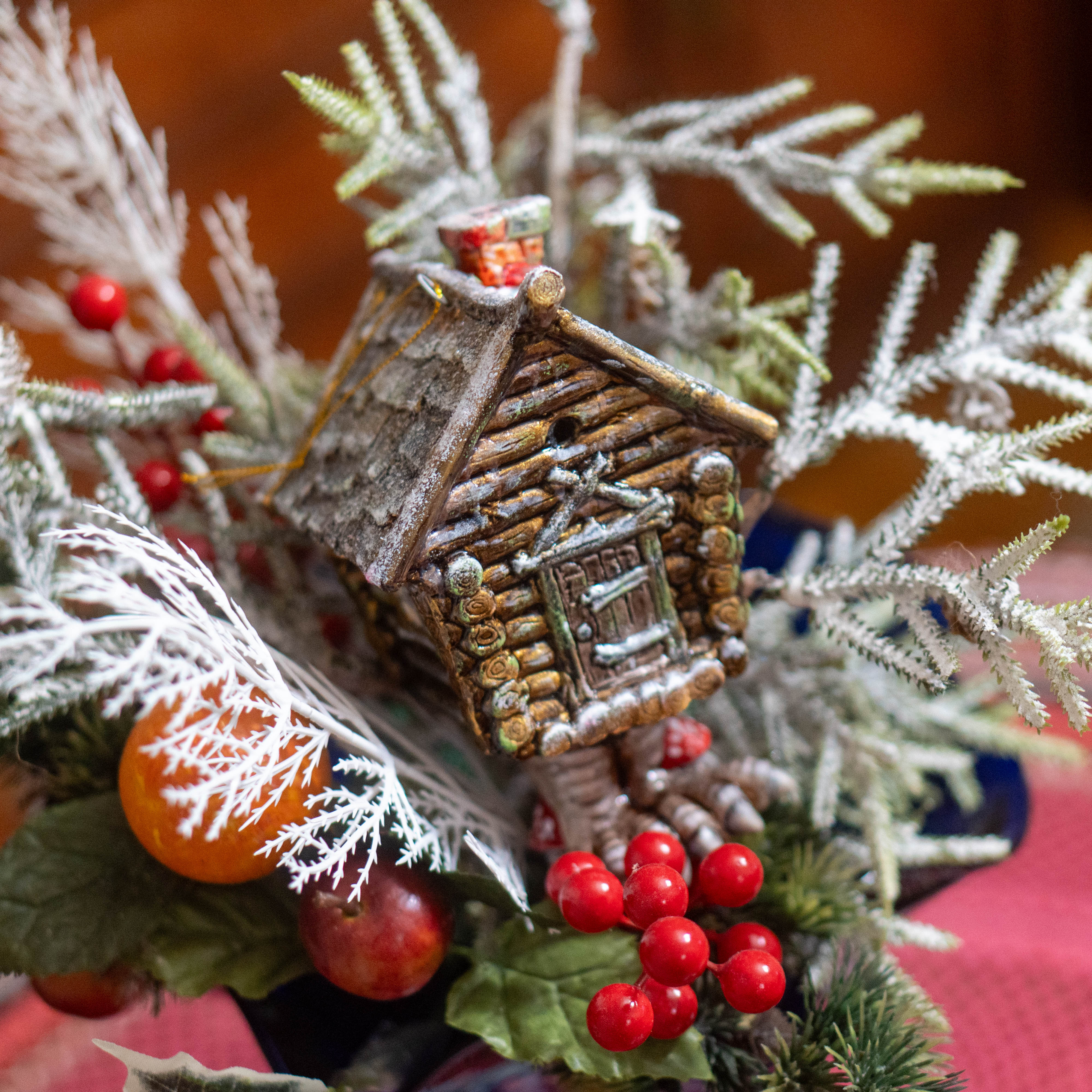 Фарфоровая ёлочная игрушка «Изба Яги зимняя» — это авторское новогоднее украшение ручной работы, в котором знакомый сказочный образ раскрывается через атмосферу зимнего леса. Заснеженные поверхности, спокойная палитра и ощущение тишины создают образ уединённого домика, скрытого среди деревьев.