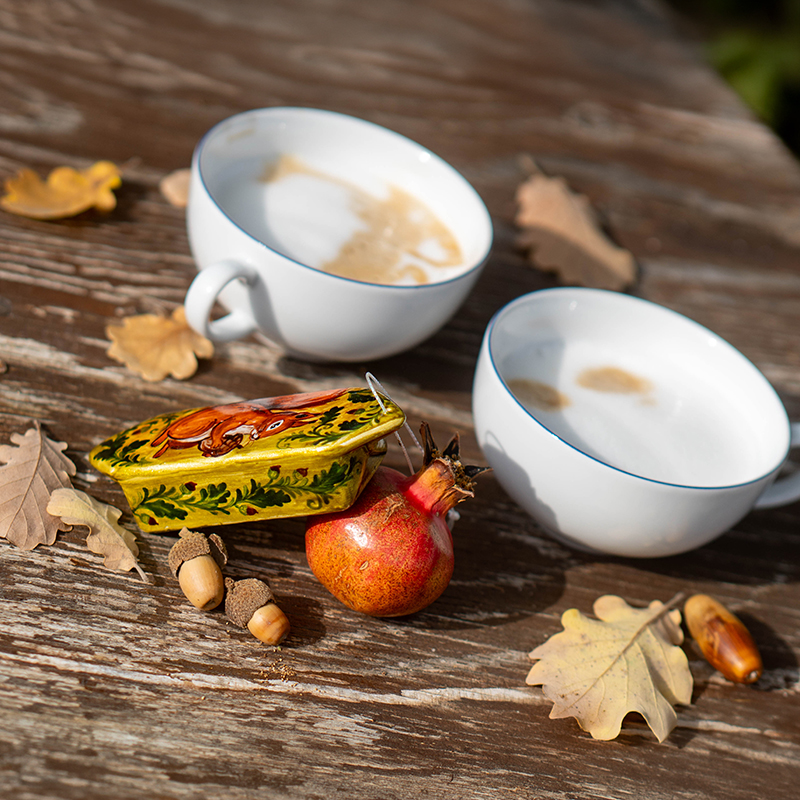 Каждая ёлочная игрушка из фарфора создаётся и расписывается вручную, поэтому каждый экземпляр уникален. Это авторская работа российской мастерской ёлочных игрушек Christmas Art, в которой сочетаются традиции ручного мастерства и тёплые воспоминания детства.