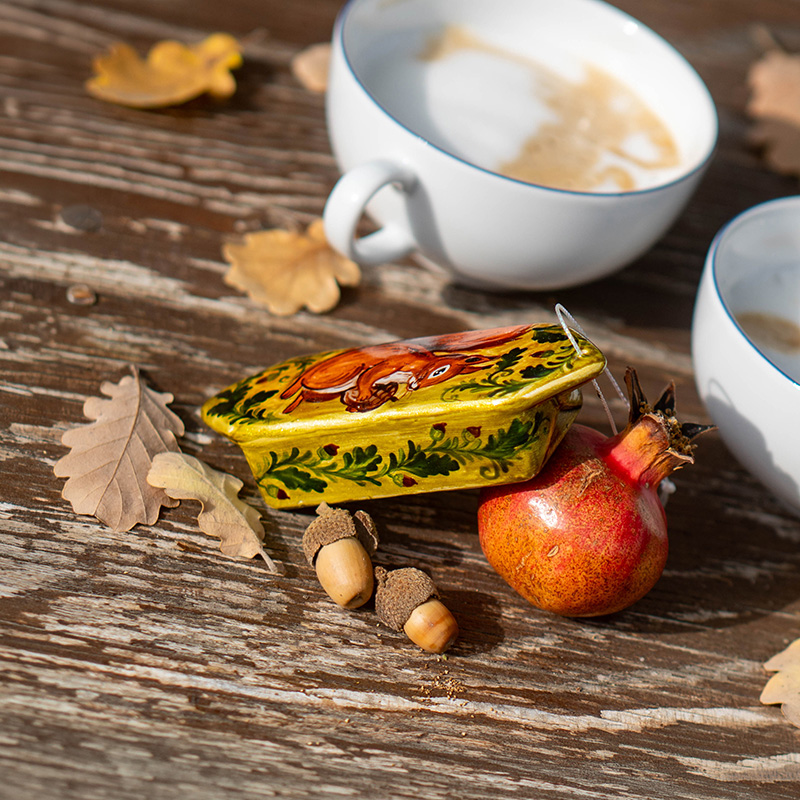 Фарфоровая ёлочная игрушка «Конфета Белочка» — это авторское новогоднее украшение ручной работы, вдохновлённое образом классической конфеты с ореховым вкусом, знакомой многим с детства. Игрушка передаёт атмосферу уюта, тепла и новогодних традиций, наполняя праздничный декор ностальгическим настроением. Изделие выполнено мастерами Christmas Art из тонкого фарфора и относится к категории коллекционных ёлочных игрушек.