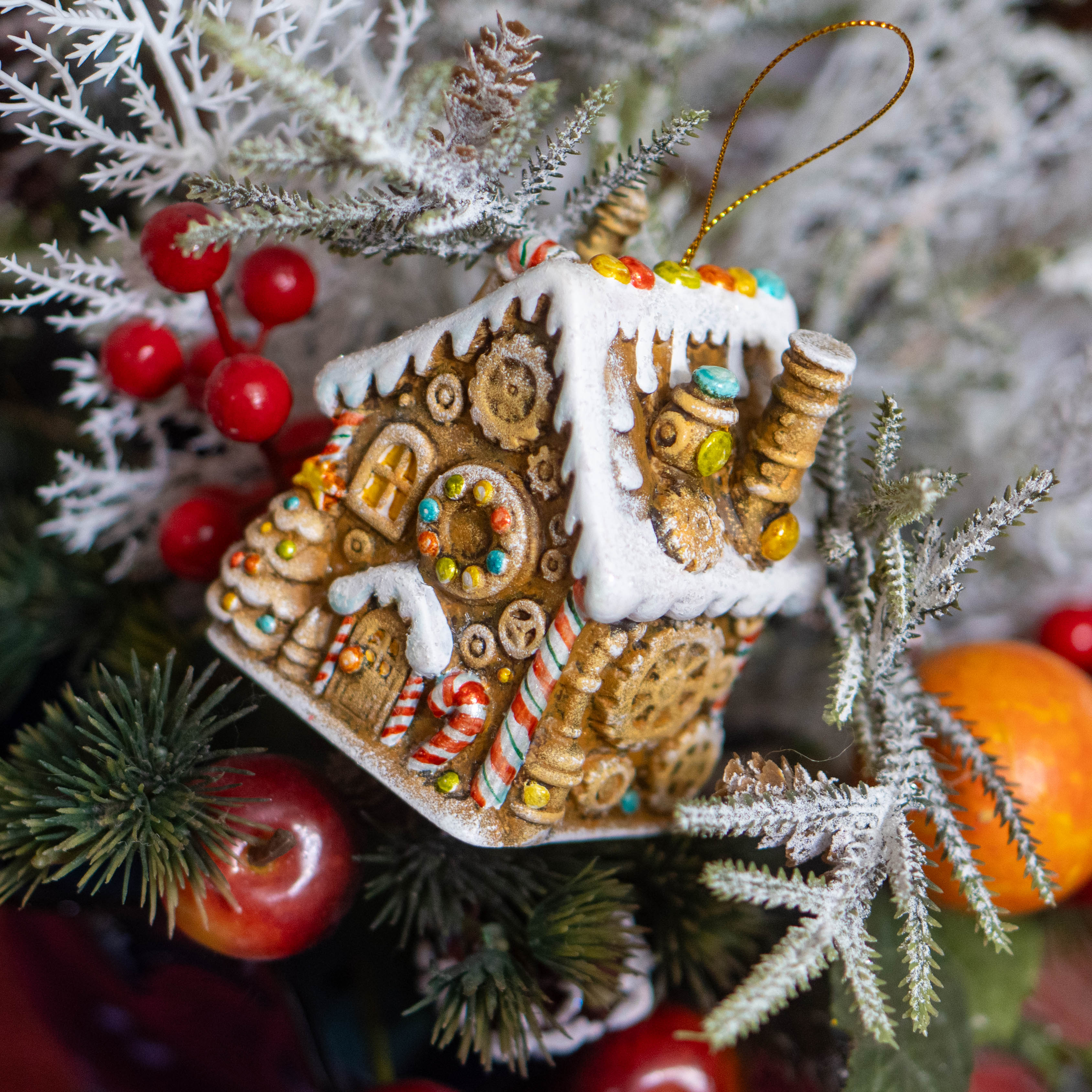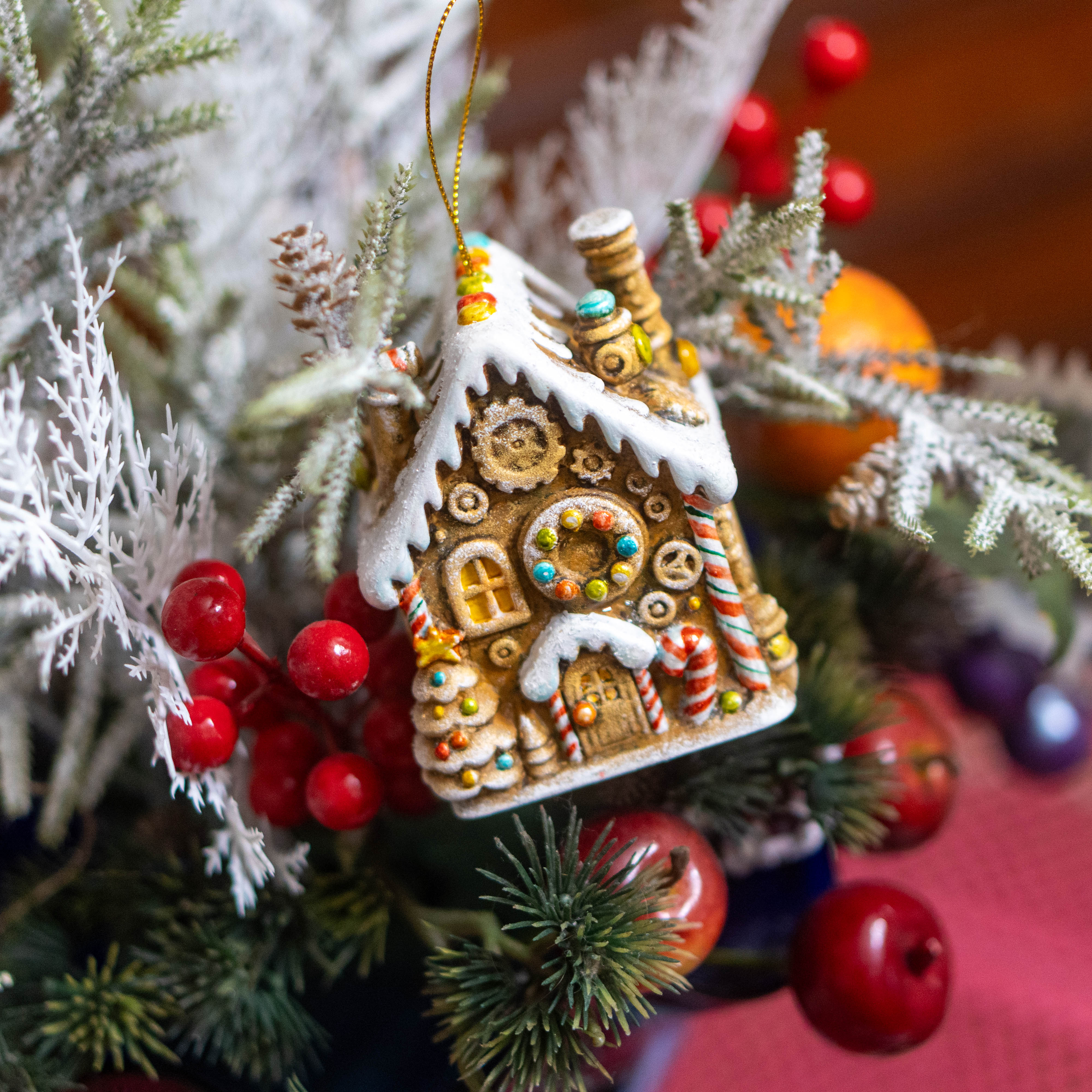 Такой пряничный домик подойдёт для тех, кто ищет нестандартные решения в новогоднем декоре и хочет добавить в оформление элемент фантазии и оригинальности.