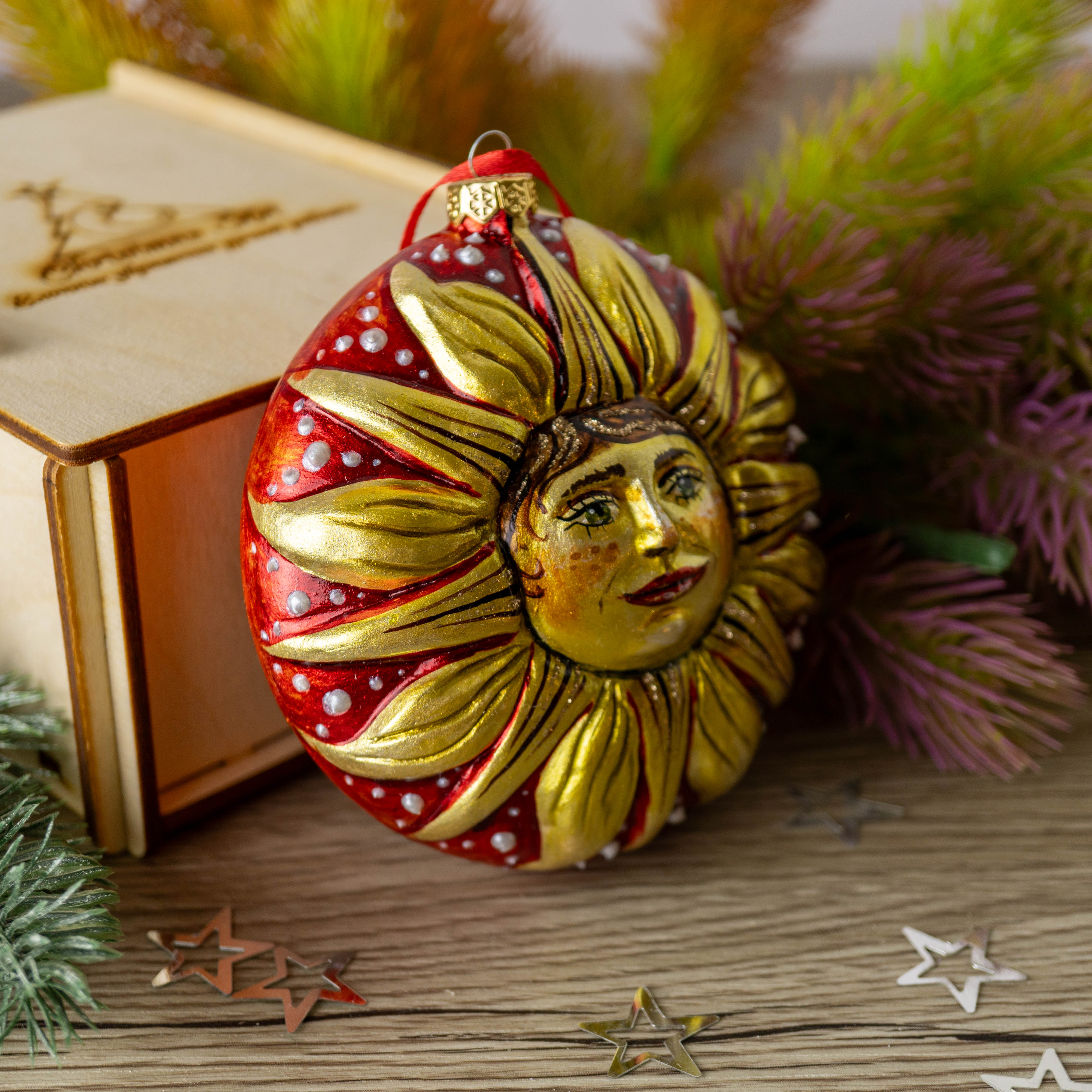 Фарфоровая ёлочная игрушка «Солнышко масленичное» — это авторское украшение ручной работы, вдохновлённое символикой одного из самых тёплых народных праздников. Образ солнца здесь передаёт идею прощания с зимой и наступления светлого времени года.