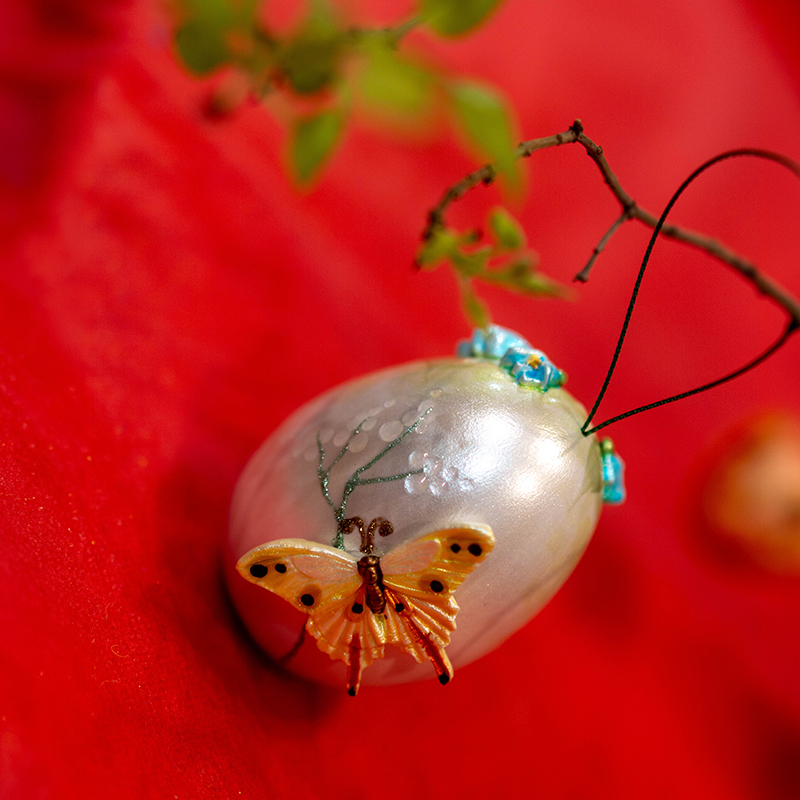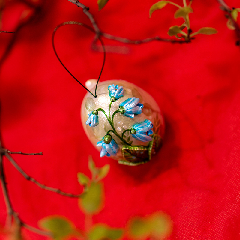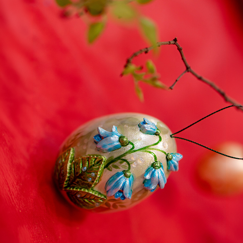 Изящная форма пасхального яйца служит основой для тонкой художественной росписи, где каждый элемент проработан с вниманием к деталям. Лёгкий фарфор подчёркивает воздушность композиции, а мягкий блеск поверхности усиливает ощущение нежности и весеннего сияния.
